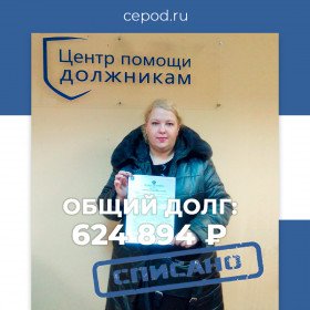 Елена Васильевна обратилась к нам с долгом 1,3 млн. руб. Долги накопились по 3 банкам и 26 МФО. Несколько дней назад мы передали Елене определение об окончании процедуры банкротства и освобождением от обязательств.